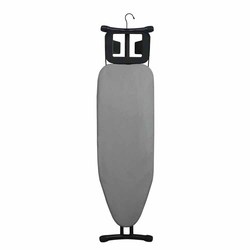 Tabla de planchar tipo soporte con parte superior de malla metálica y gancho de descanso plegable para uso en el hogar o en el armario de viaje